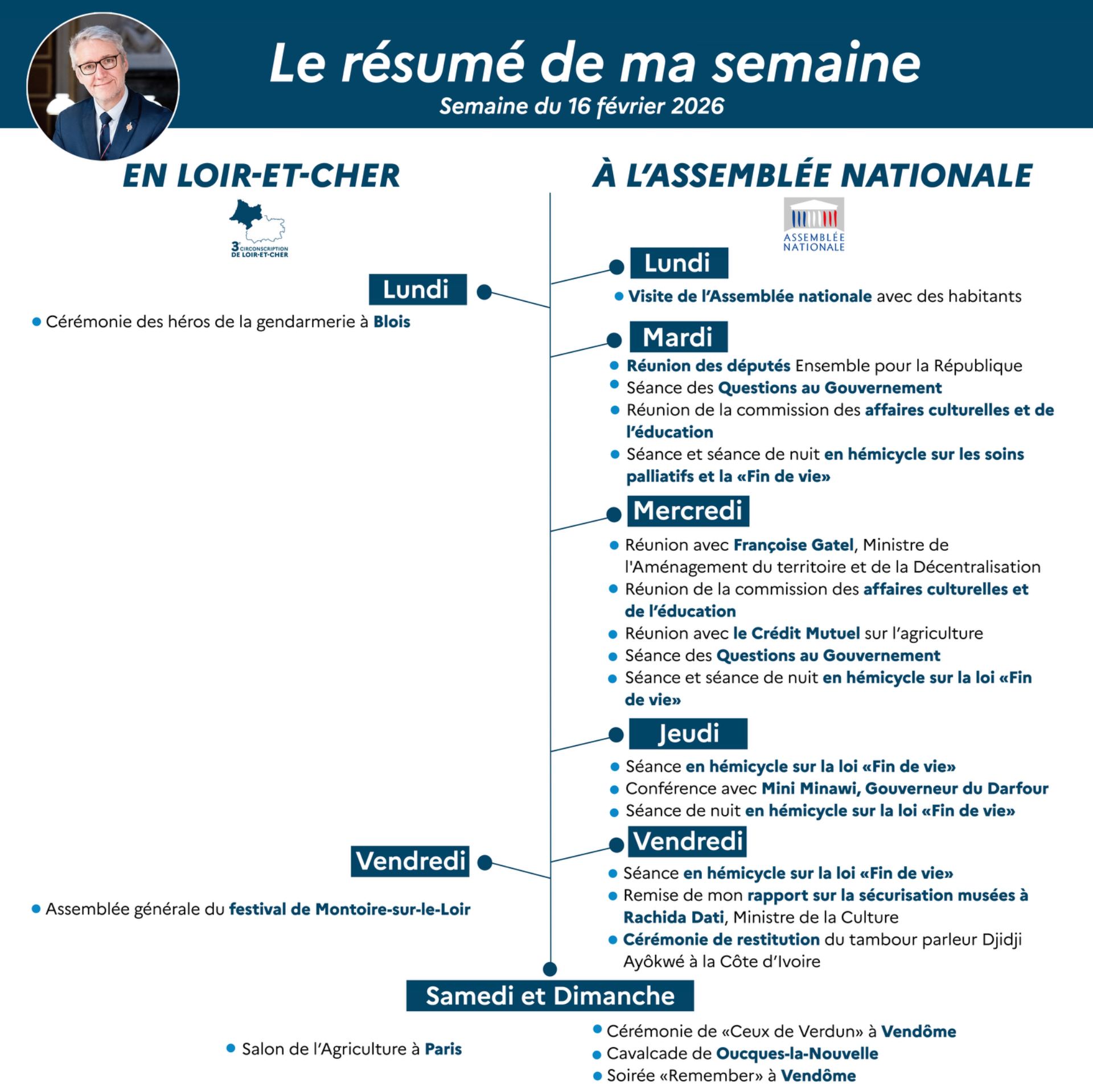 Ce site internet a pour vocation de partager avec vous mon actualité de député de la troisième circonscription de Loir-et-Cher, à Paris mais également au cœur de notre beau territoire. Même si les outils numériques facilitent le lien entre les citoyens et leurs élus, je demeure persuadé que les échanges se nourrissent de contacts directs. Habitants de la circonscription, responsables associatifs, entrepreneurs, élus locaux...